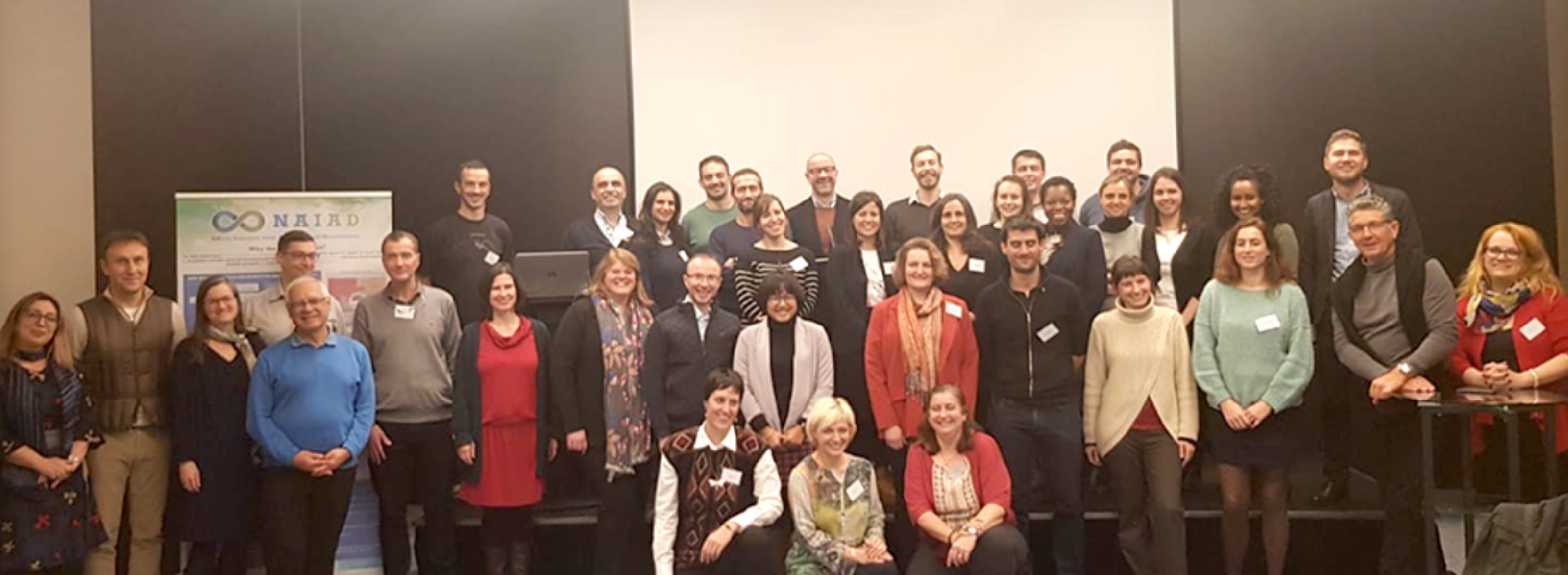 PHUSICOS (represented by Amy Oen and Farrokh Nadim, no. three and four from left) in good company, contributing to NBS indicator and assessment framework discussions at the NAIAD Cluster Meeting in Ljubljana with OPERANDUM, RECONECT, UNaLab, and other NBS projects.