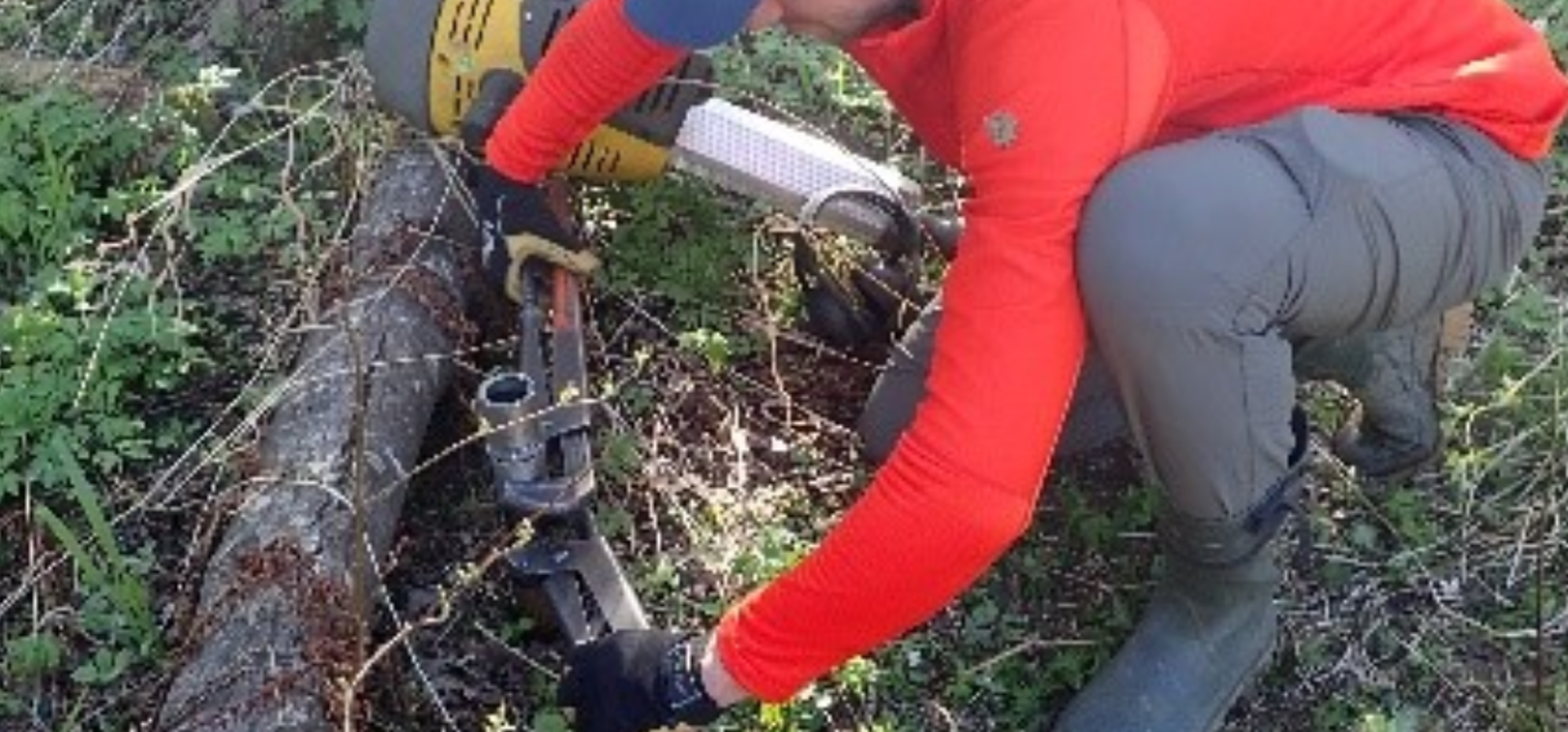 Stian installing pipes for the groundwater monitoring. The ground water level is presently high, as seen from the drainage ditch next to Stian.