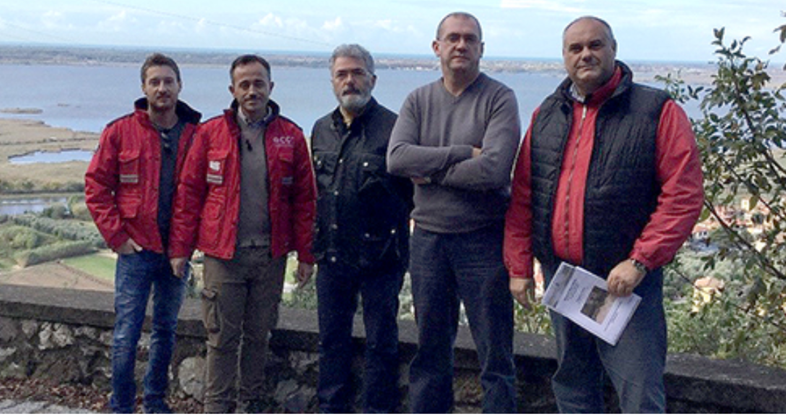 As part of the PHUSICOS WP2 preparations, Anders Solheim visited ADBS, CGT, and the sites around Lake Massaciuccoli in the period 7-9 November, during the week before the Naples consortium meeting. The visit included meeting in the ADBS premises in Lucca on Wednesday 7 November, to prepare for the field trip the next day, site visit to the lake area on Thursday 8 November, and visit CGT’s offices and laboratories on Friday 9 November. The picture above shows the team from ADBS and CGT with a view of Lake Massaciuccoli and the surrounding lowlands. From left to right: Claudio Vanneschi, Altair Pirro, Nicola Coscini, Andrea Di Grazia, Nicola Del Seppia (Photo: A. Solheim).