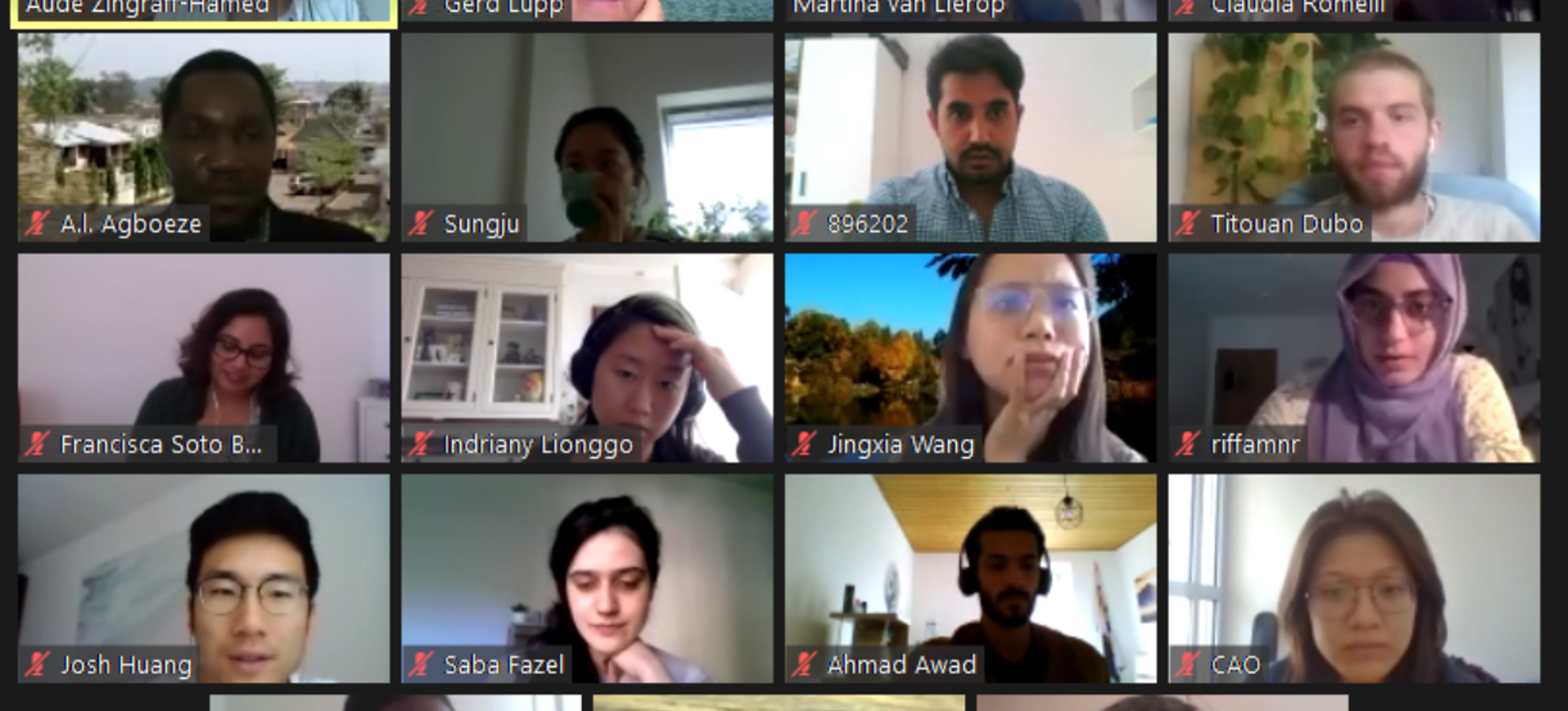 The moderators Dr. Aude Zingraff-Hamed, Dr. Gerd Lupp and Martina van Lierop warmly welcomed the twenty participants, namely Master students, PhD candidates and young professionals from around the world. They are participating in the online course with lectures, group discussions and workshop formats. Despite the lack of in-person meetings and site visits, the participants of the webinar perceive it as a very positive offer as it allows participating also with work obligations or no available budget for travel.